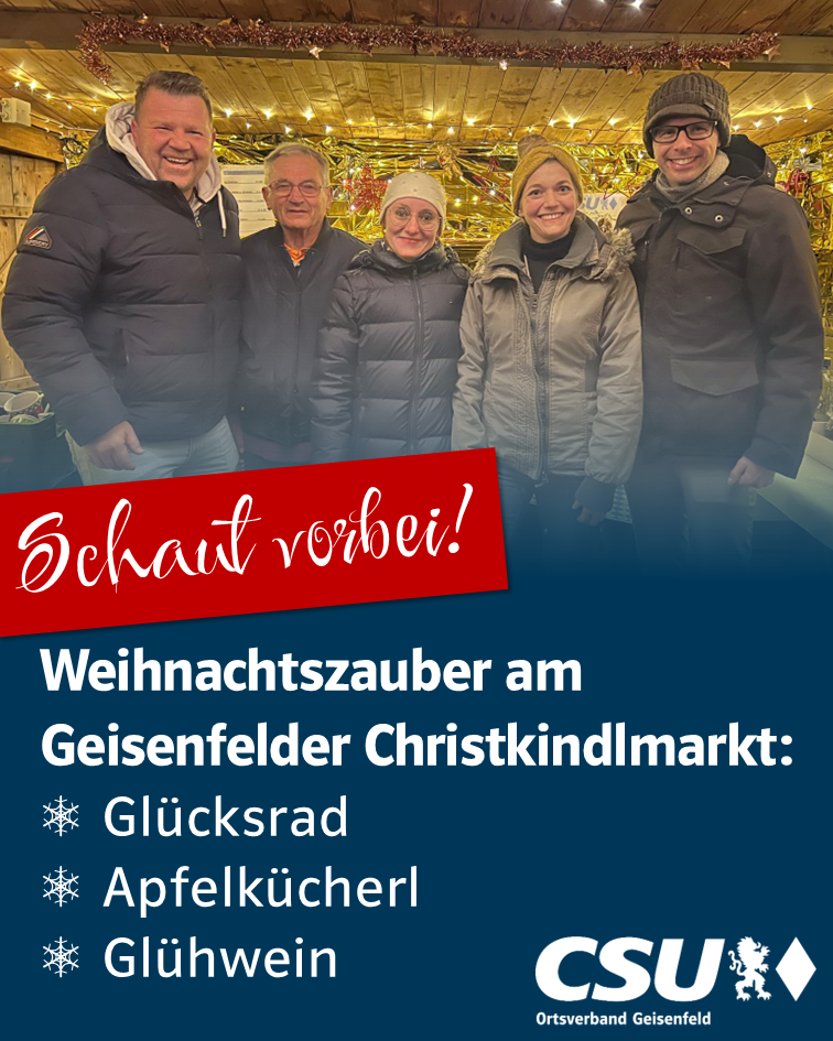 Vom 28. bis 30. November 2025 ist die CSU am Christkindlmarkt im Sinnesgarten mit einem eigenen Stand vertreten. Besucherinnen und Besucher können sich vom Weihnachtszauber begeistern lassen: